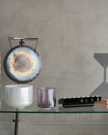 This curated combination carries a calm, nurturing, grounded, and openly expressive presence. Lavender Aura Gold encourages ease and soft emotional release, while Mother of Platinum brings harmony and nurturing balance. The GD Wave adds grounding movement, the G Major Wing brings uplift and clear expression, and the Midway Rain Stick offers light texture and gentle emotional flow. The Grotta Sonora 15" Handheld Gong adds depth and resonance, anchoring the sound field with warmth and spacious presence. Together, this combination creates a balanced atmosphere that supports reflection, communication, and centered emotional work.